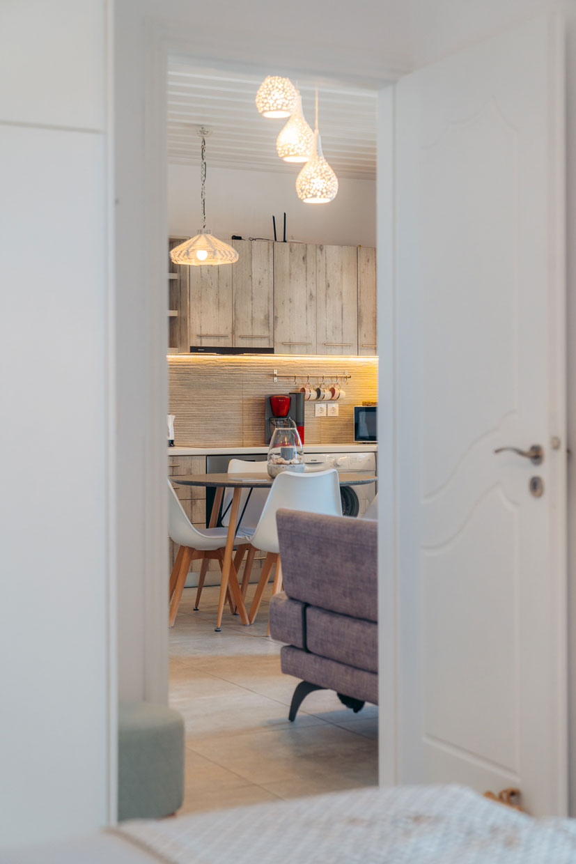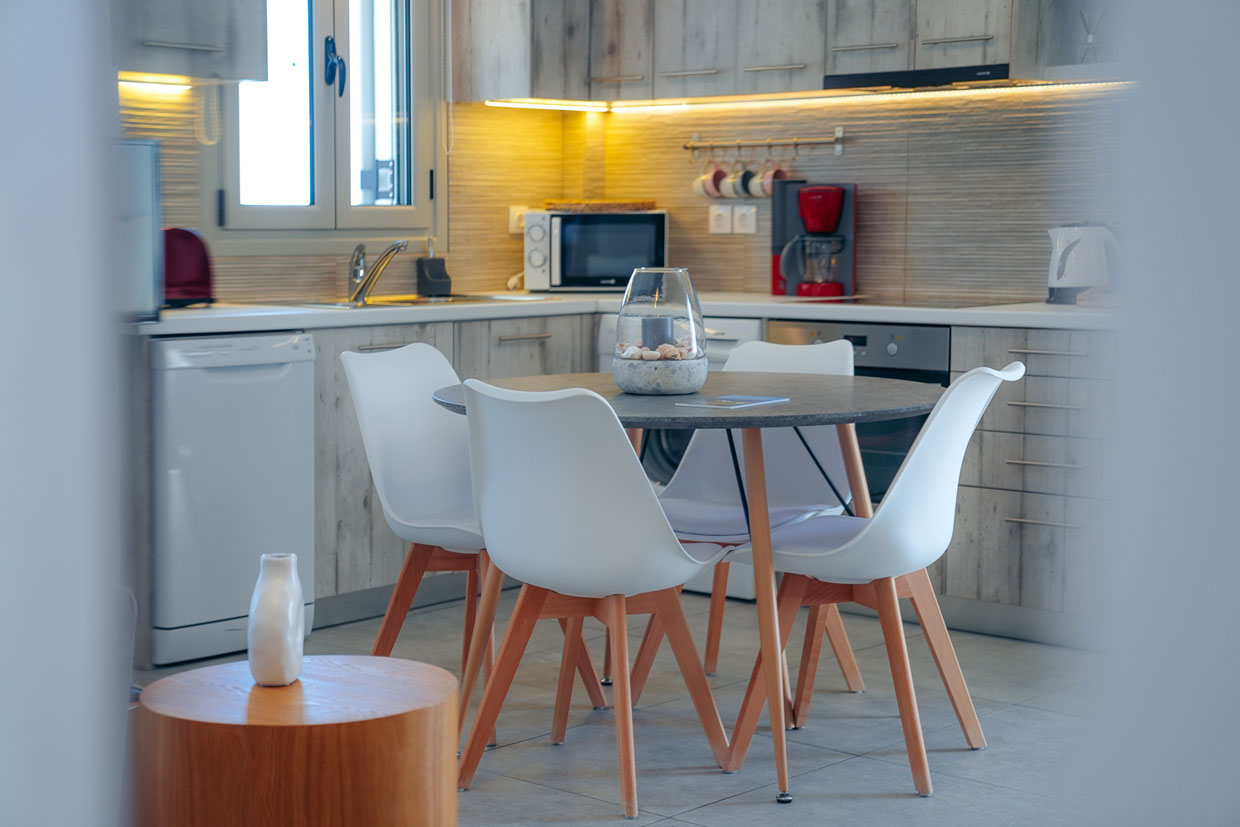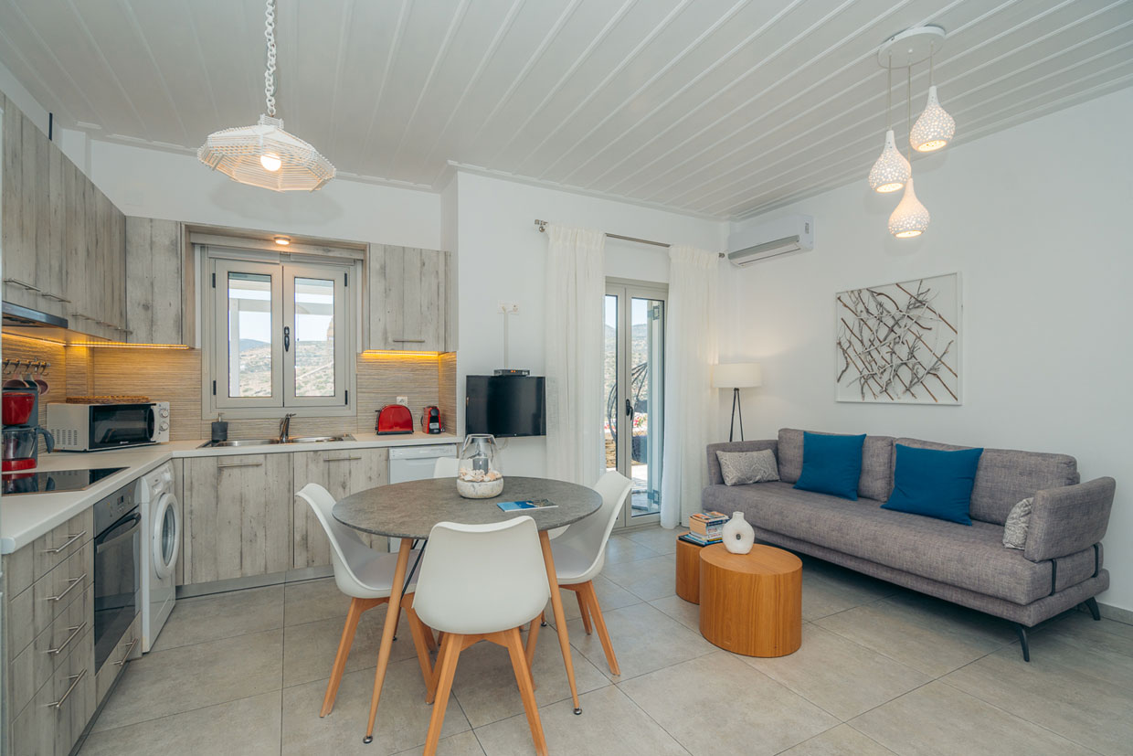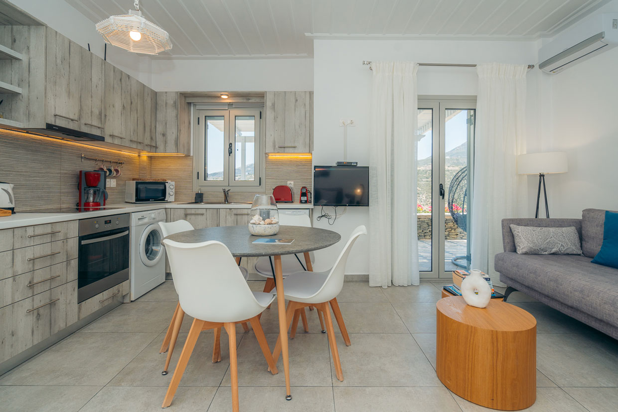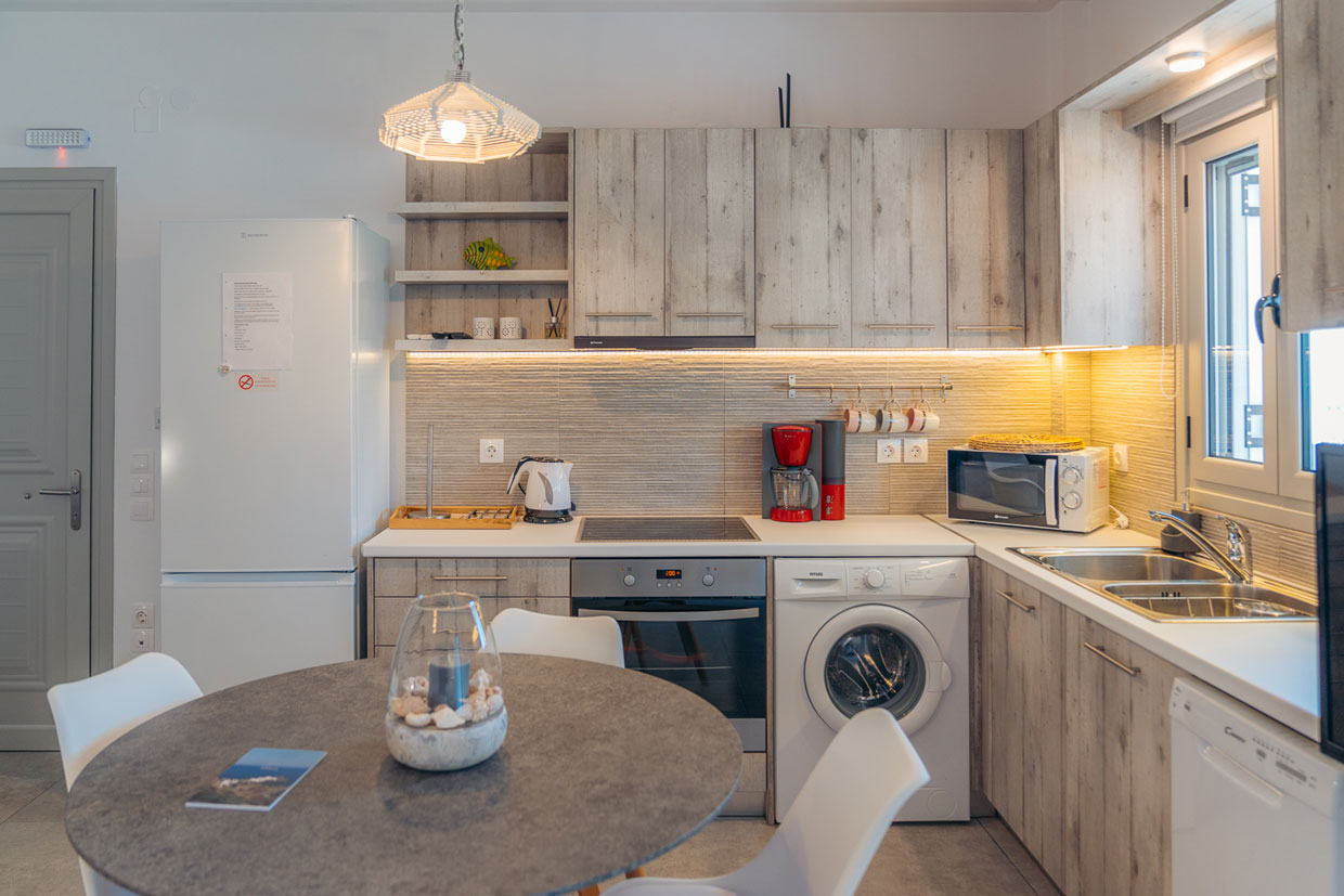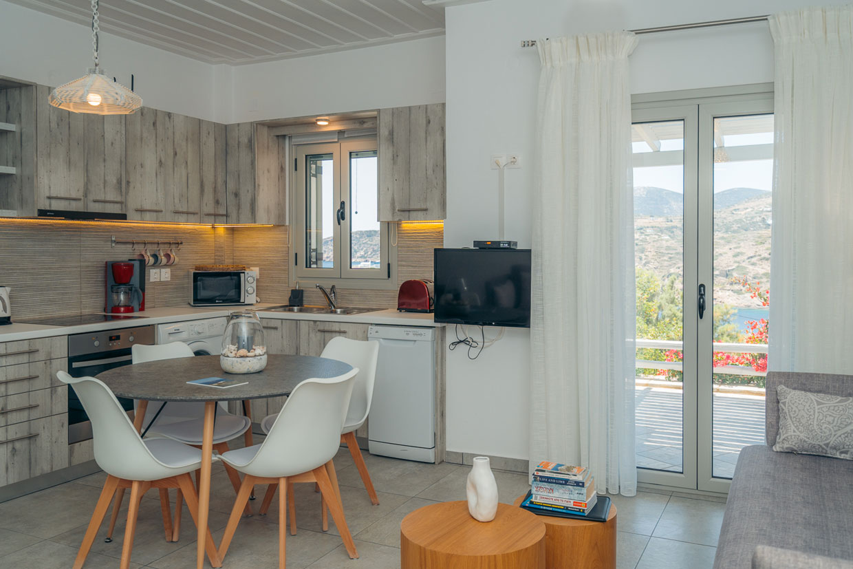 Με την πλήρως εξοπλισμένη κουζίνα και το σε κοντινή απόσταση μίνι μάρκετ, μπορείτε να απολαύσετε μια ζεστή οικογενειακή ζωή στο νησί.